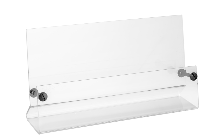 Gebruik deze folderhouder om uw producten en diensten met een brochure te presenteren. Geschikt voor bureau of balie presentatie. Optioneel te voorzien van logo of tekst.