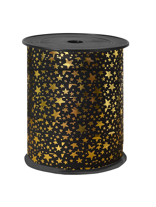 KP® Bedrukt cadeaulint - Stars 10mmx150m, Zwart/Goud