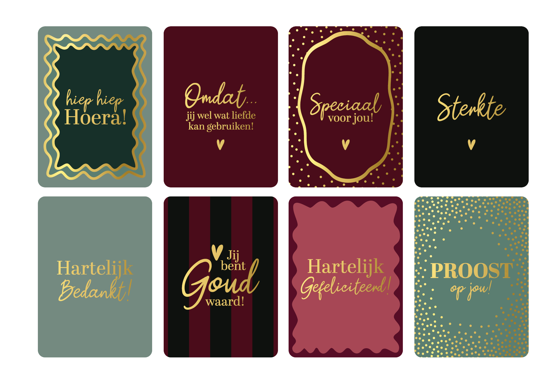 In dit pakket met 24 verschillende dessins ontvangt u van elk dessin 25 kaarten. Daarnaast ontvangt u de wenskaarten molen.
