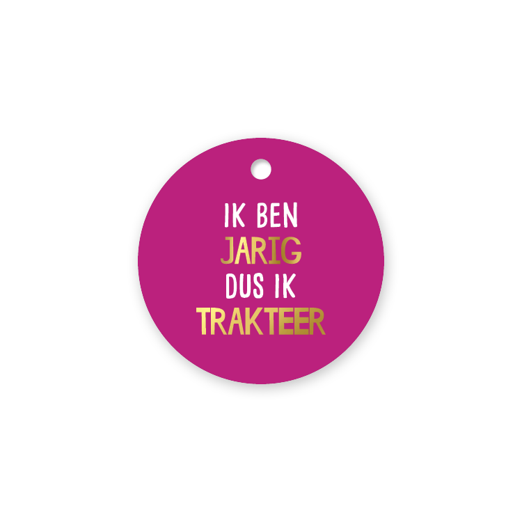 KP® Cadeaulabel - Ik ben jarig dus ik trakteer (Magenta) - D60mm