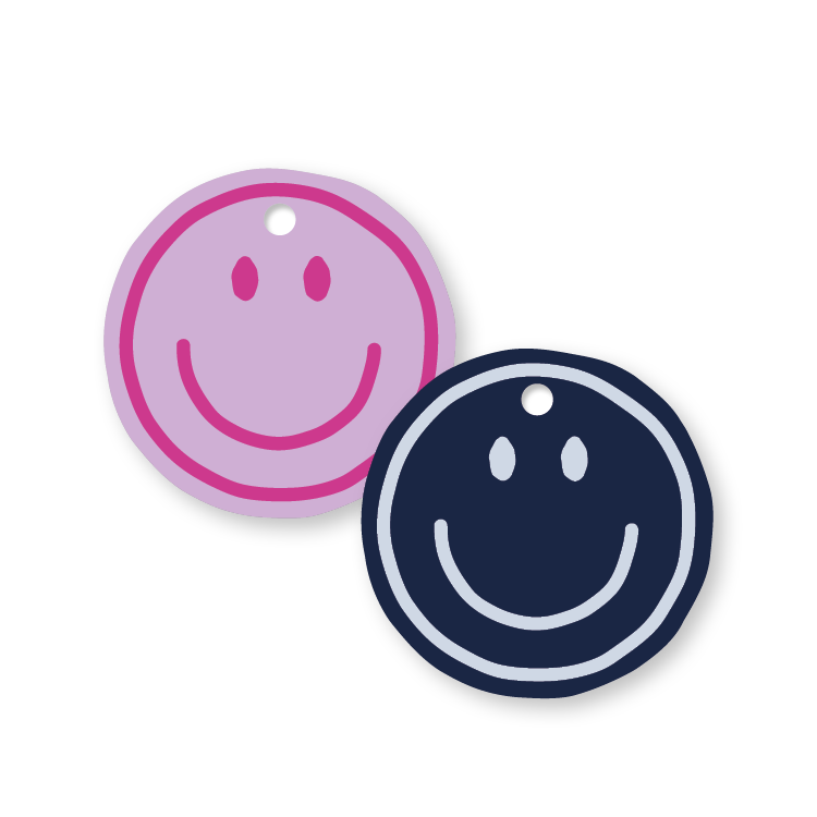 KP® Cadeaulabel - Smiley Paars/Donkerblauw dubbelzijdig - D55mm
