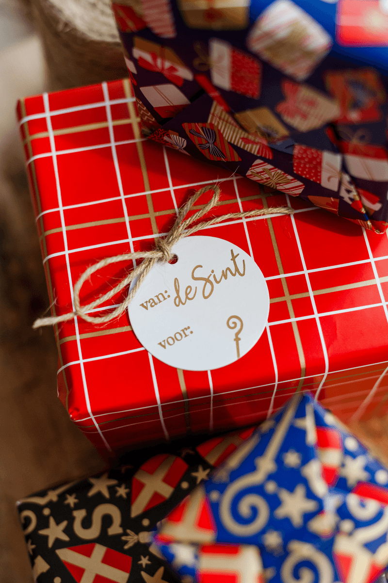 Een klassiek label met invulruimte voor de naam van de ontvanger. Perfect voor surprises of pakjesavond. Deze feestelijke ronde labels van 60 mm zijn bedrukt met goudfolie en hebben een handig boorgat om snel te bevestigen met lint of touw. Ideaal voor Sinterklaasverpakkingen, traktaties of kleine verrassingen. Combineer met bijpassend cadeaupapier en cadeaulint voor een vrolijke presentatie die bij jong én oud in de smaak valt.