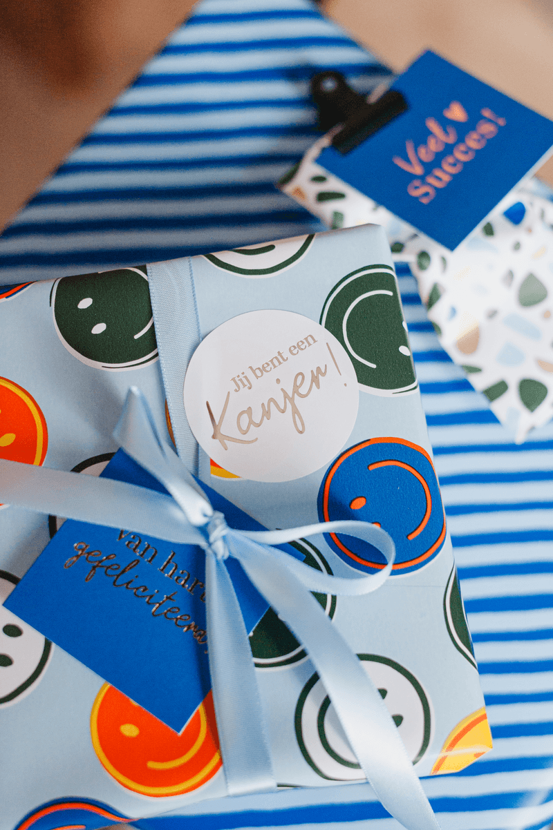Op zoek naar bijpassende decoratie, cadeaulinten of wensetiketten bij dit cadeaupapier? Wij helpen je graag om de perfecte geschenkverpakking samen te stellen. Bel of mail ons gerust. Ook delen we 7 dagen per week inspiratie en tips op social media via @Kassaplan.