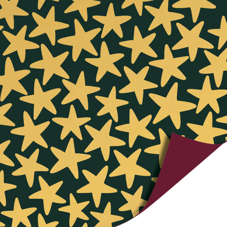 Coated cadeaupapier Stars green/gold 30cm 100 meter. Perfect te gebruiken voor het inpakken van uw cadeautjes of geschenk.