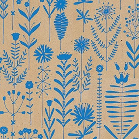Eco Recycling bruin 70gr cadeaupapier Ischia blauw op rol van 50cm x 200 meter met een stijlvol en eigentijds dessin. Perfect te gebruiken voor het inpakken van je cadeautjes of geschenk.