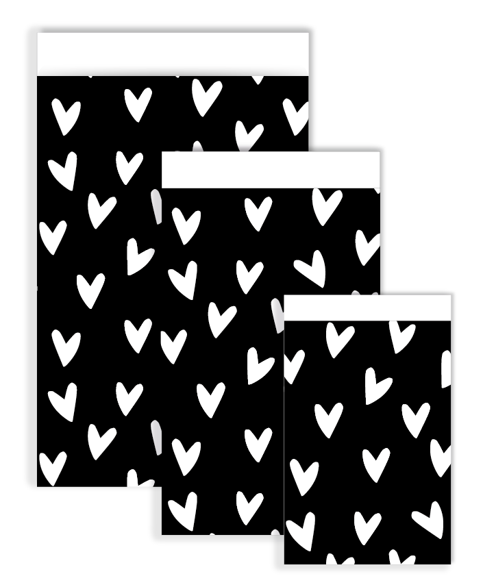 KP® Cadeauzakjes 17x25cm Hartjes voor jou Zwart/Wit 250st