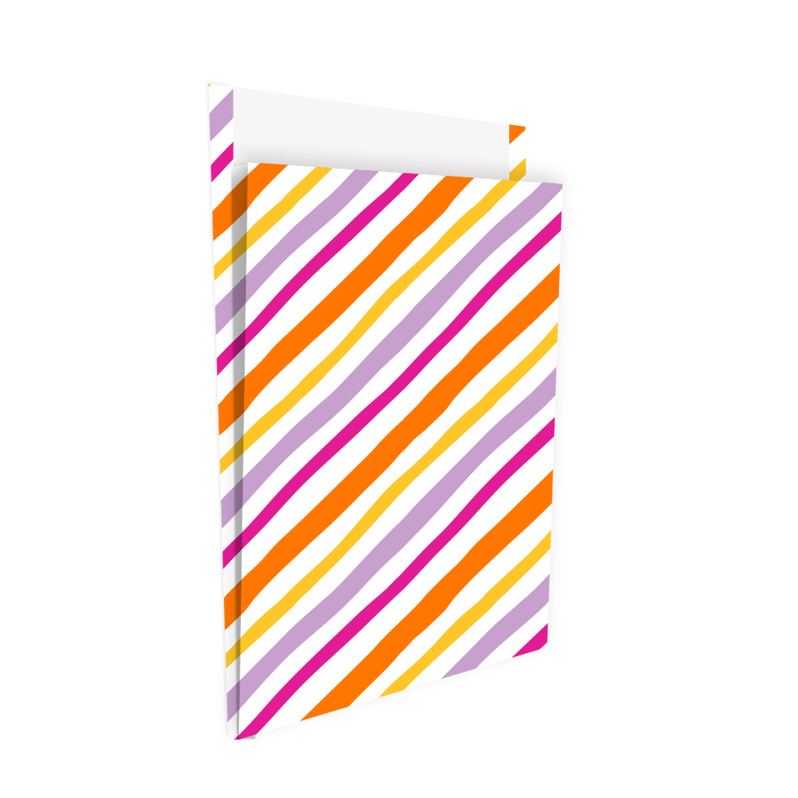 Moderne Painted Lines cadeauzakjes in paars maken cadeaus extra kleurrijk. Leuk voor verjaardagcadeaus, feestjes of zomaar. Binnen een handomdraai is je cadeau verpakt, en het ziet er meteen extra feestelijk uit. Voeg een wensetiket en lint toe en maak het cadeau helemaal af!