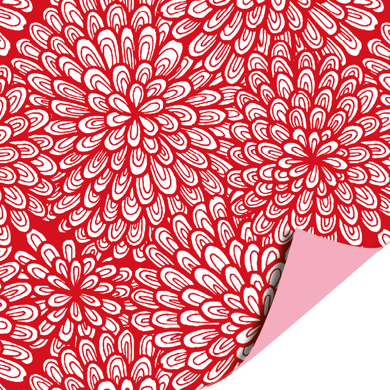 Coated cadeaupapier Luxury Flowers Red met Uni Pink achterzijde 100 meter. Perfect te gebruiken voor het inpakken van uw cadeautjes of geschenk.