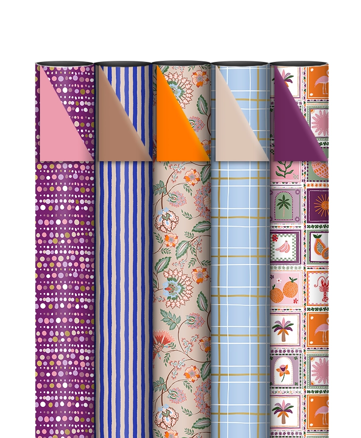 Deze box bestaat uit 5 verschillende dessins inpakpapier, die ook los als toonbankrol verkrijgbaar zijn.