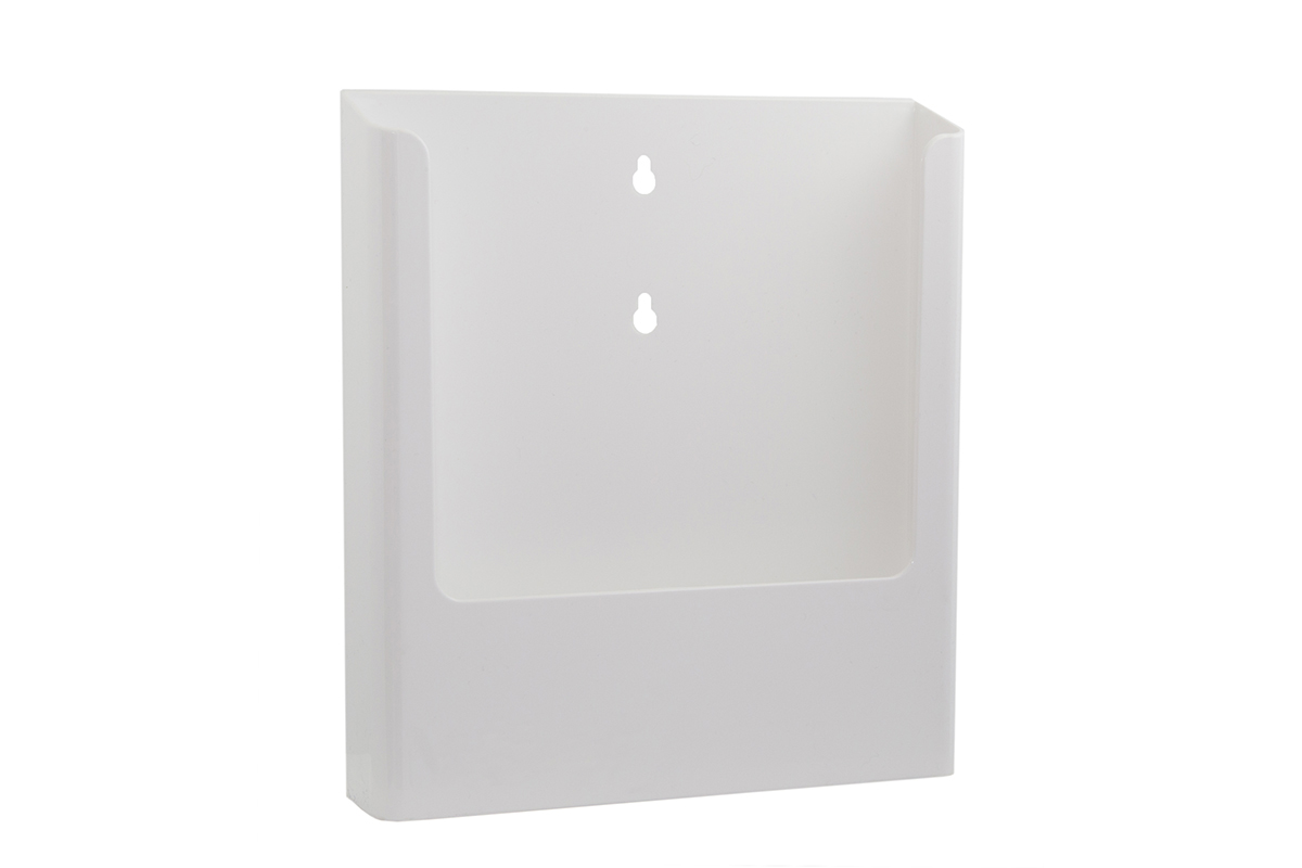 Gebruik deze folderhouder om uw brochures te presenteren. Geschikt voor wand of schap presentatie en eenvoudig op een display te monteren. Ook in kleur verkrijgbaar. Optioneel te voorzien van logo of tekst.