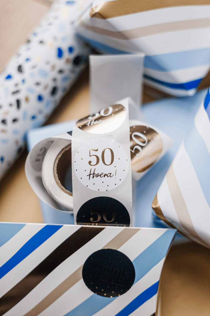Deze stijlvolle stickers '50 jaar hoera' personaliseren elk cadeau. Perfect als sluitsticker of cadeausticker speciale momenten.