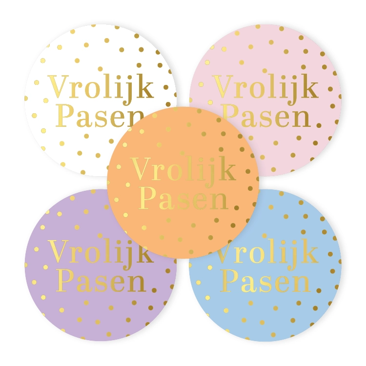 KP® Stickers D40mm - Vrolijk Pasen (pastel kleuren) (5 varianten) 250p/r