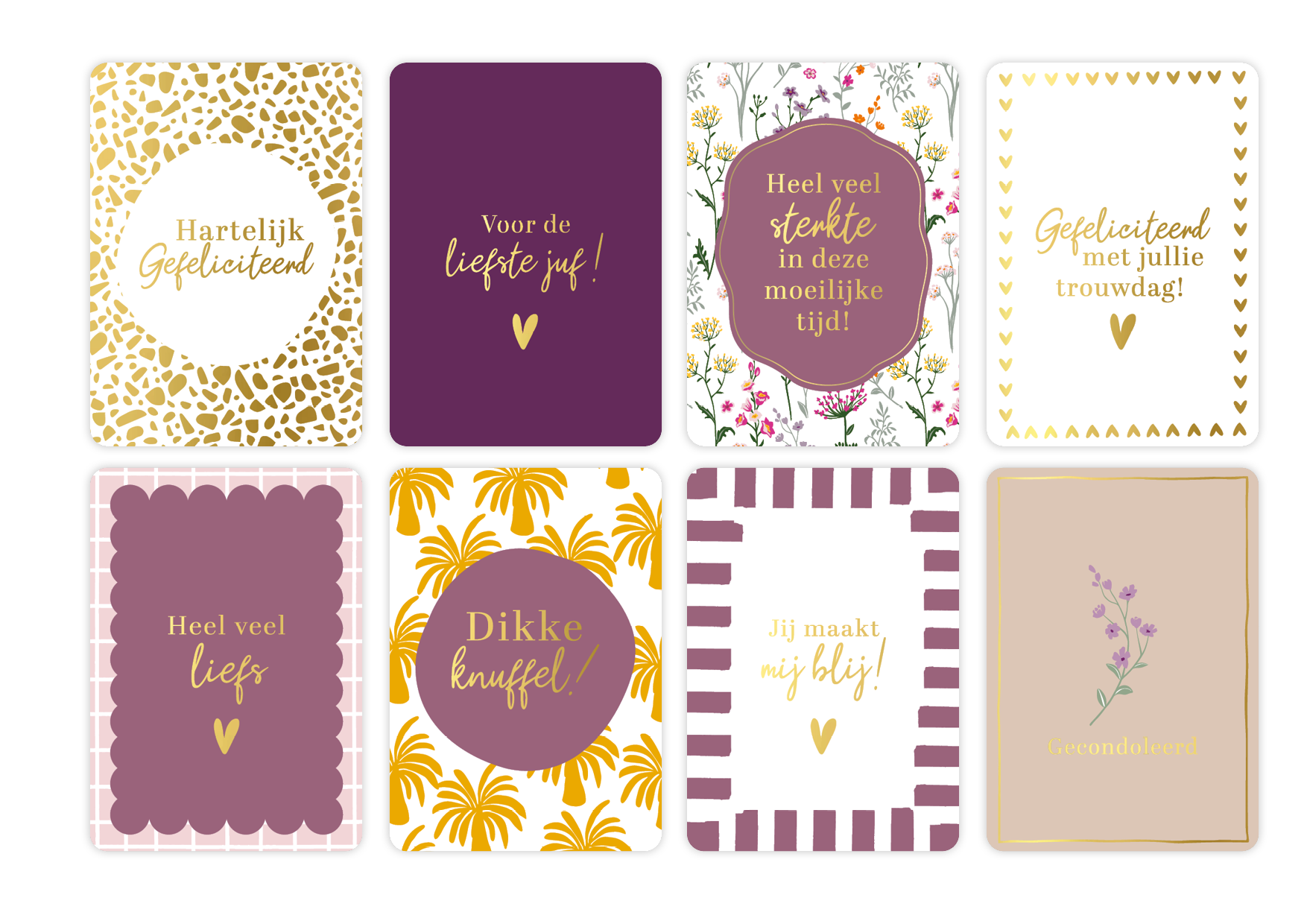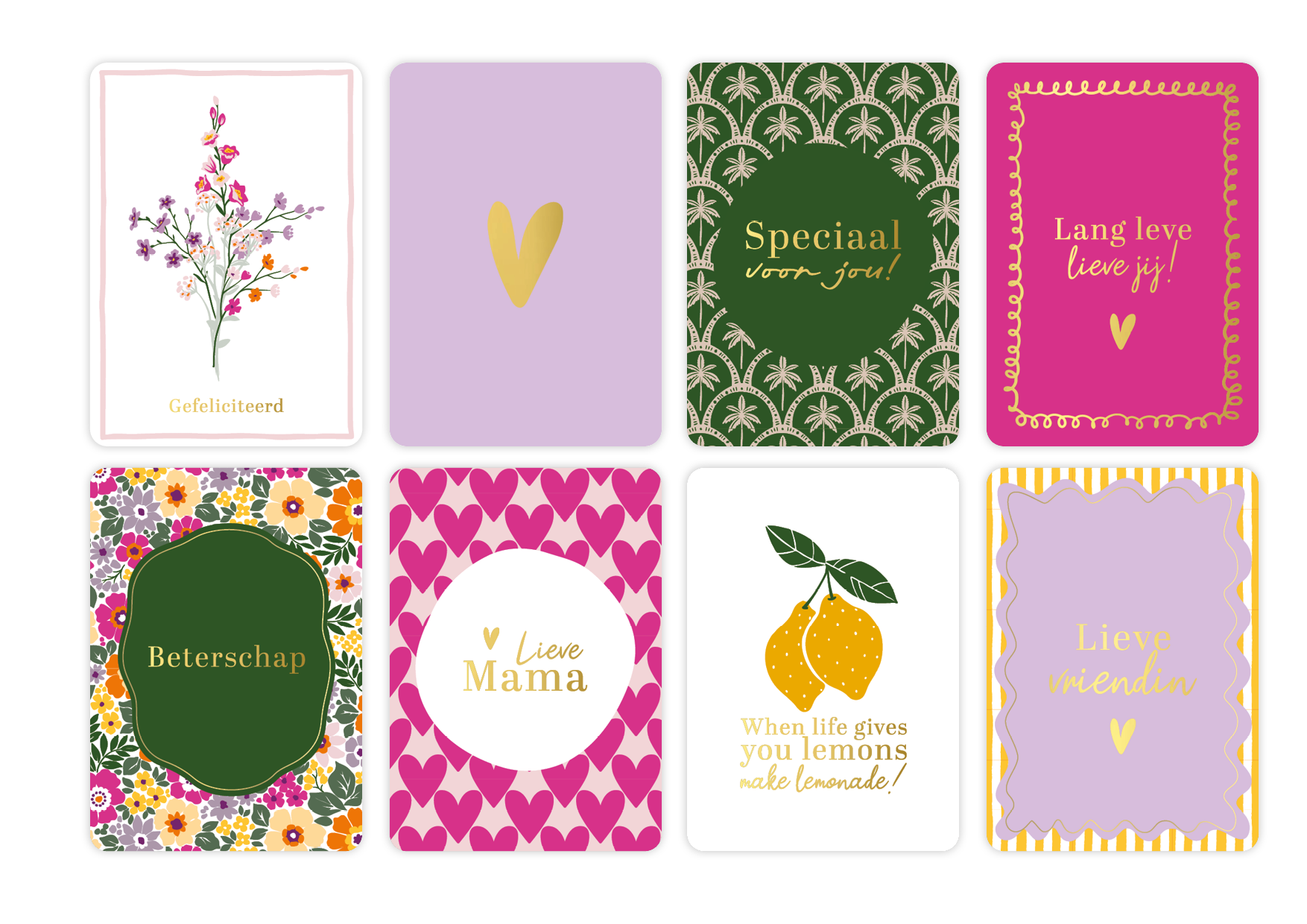De volgende wenskaarten zitten in dit pakket: