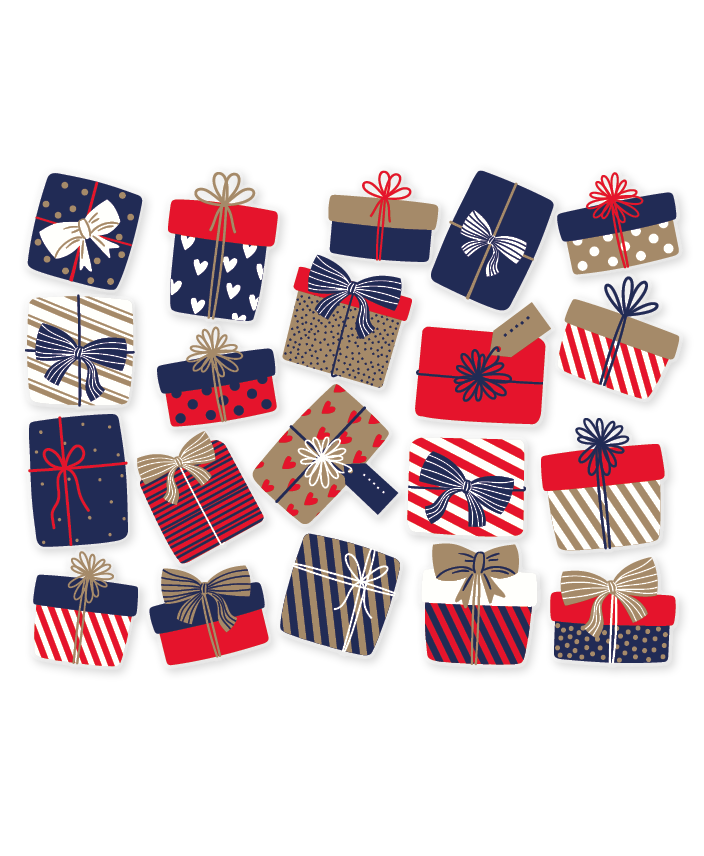 Breng een vrolijke en feestelijke sfeer in huis met dit raamstickervel vol kleurrijke cadeautjes, in rood- en blauwtinten. De verschillende formaten zorgen voor een speels geheel, perfect om je ramen helemaal in de feeststemming te brengen. De EasyDot-raamstickers zijn eenvoudig aan te brengen en te herpositioneren. Na gebruik verwijder je ze moeiteloos, zonder lijmresten achter te laten.