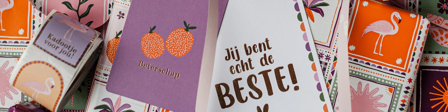 Perfect te combineren met een cadeau, een bos bloemen of een verzendpakket. Dankzij het handige A6-formaat met afgeronde hoeken passen deze kaarten bij elke gelegenheid. Op de achterkant is ruimte voor een persoonlijke boodschap, waardoor ze ook leuk zijn om gewoon zo te geven.