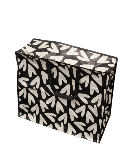 Deze shopper XL met rits - Hearts zwart/wit is de nieuwe dagelijkse favoriet! Hij is niet alleen stevig, maar ook verrassend licht, dankzij het duurzame polypropyleen (PP) materiaal. Met zijn afmetingen van 58x28x48 cm biedt hij volop ruimte voor alles wat u mee wilt nemen, of het nu om boodschappen gaat, werkspullen, of spullen voor een leuk dagje uit.