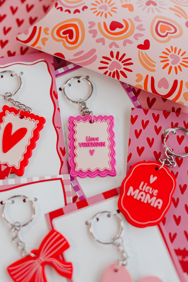 Onze 'Lieve mama' sleutelhangers zijn gemaakt van PVC en voorzien van een hoogwaardige bedrukking.