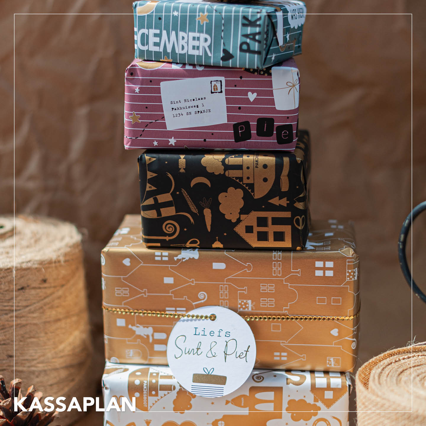 Vrijblijvend advies over decoratie, cadeaulinten, wensetiketten etc. die aansluiten bij dit cadeaupapier? Wij helpen u graag om uw perfecte geschenkverpakking samen te stellen, bel of mail ons gerust. Daarnaast voorzien wij u 7 dagen in de week van inspiratie en advies op social media @Kassaplan.