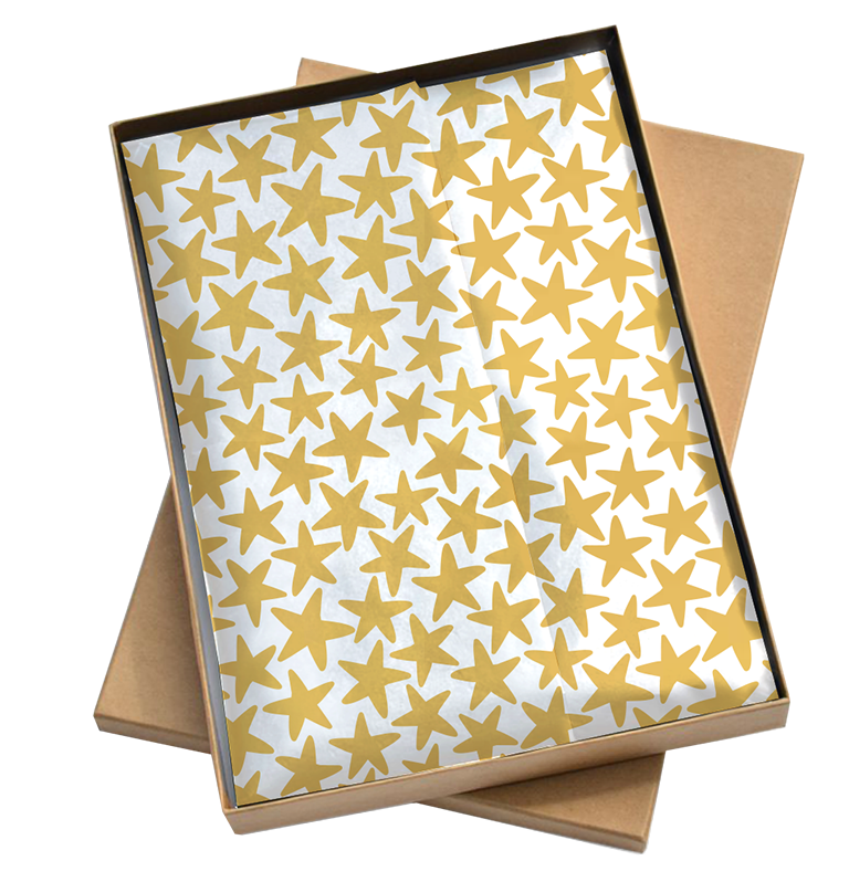 Pak eindeloos in door te spelen met diverse producten die bij het Stars white/gold dessin passen. Dit zijde vloeipapier wordt gedrukt op hoogwaardig vloeipapier.